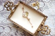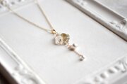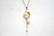 凹凸のレジンにお花とパールを封じ込め、ゴールドで装飾し、大小二粒のコットンパールをあしらったペンダント。