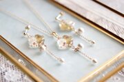 小ぶりなレジンとコットンパールがゆらゆら揺れるさまが優雅です。
