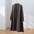 大人の上品な可愛らしさを演出 丸襟ワンピース ロングワンピース リネンワンピース ダークグレー250918-3