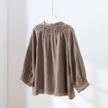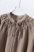 ハンドメイド感たっぷりのチュックドブラウス リネン100% リネンブラウス ピンク 茶色 250810-2