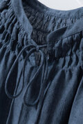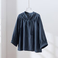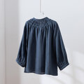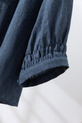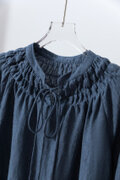 ハンドメイド感たっぷりのチュックドブラウス リネン100% リネンブラウス ピンク 紺色 250810-3
