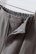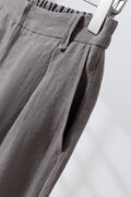きれいに穿けるフロントタックパンツ リネン100% 裾絞りハイウェストパンツ ダークグレー 200805-2