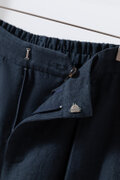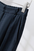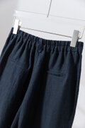 きれいに穿けるフロントタックパンツ リネン100% 裾絞りハイウェストパンツ 紺色 200805-4