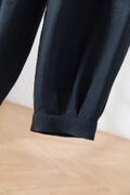 ★こだわりの「裾しぼり」デザイン。裾に向かってほんのりと細くなる、ほのかなサルエルシルエットが、美しい足長ラインを演出します。歩くたびに軽やかに揺れる裾が、洗練された印象を与えます。