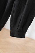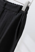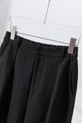 きれいに穿けるフロントタックパンツ リネン100% 裾絞りハイウェストパンツ ブラック 200805-5