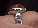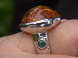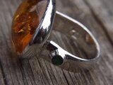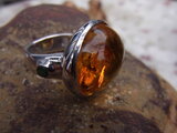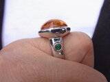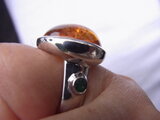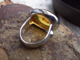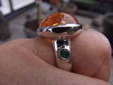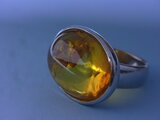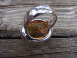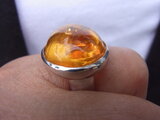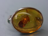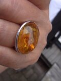 中に虫などのインクルージョンはありません。葉っぱのようなインクルージョンはあります。2,5センチと大きいので、琥珀色を楽しむリングです。