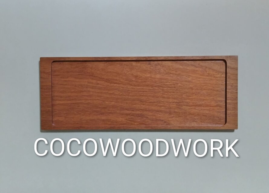 カリン無垢材で作ったトレーです。カリン材は硬く狂いの少ない木材です。ティータイムに活躍する、コースターを兼ねたトレーです。