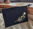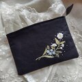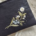 ナチュラルリネンに花や葉などのボタニカル刺繍をしています。