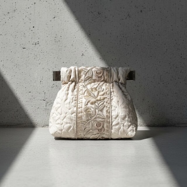 【ふわふわバネ口ポーチ】リップ・イヤホン・アクセサリー収納/小物入れにも/インド刺繍/プレゼントにもおすすめ