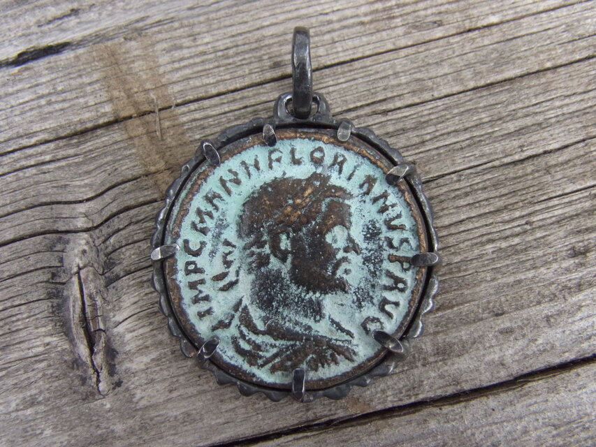 いぶし銀の枠に入れたことにより、すごい雰囲気のある力つよいコインペンダントに