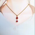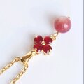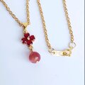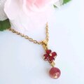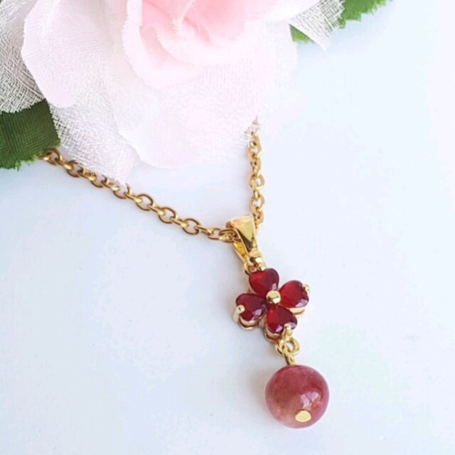 女性らしく可愛い8㎜サイズのピンクトルマリンとワインカラーの花のガラスチャームが上品な素敵なネックレスです。