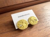 【 満ちる円 】軽い耳飾り 一粒クリスタルクォーツ 金属アレルギー対応イヤリングe010イエロー黄色