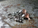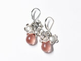 サーモンピンクウエディングビーズとお花カレンシルバーと、たわわな小さな鈴のピアス