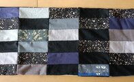 お気に入りのファブリックを長方形に裁断して、全て手縫いでつなぎ合わせ、巻き物が完成しました。