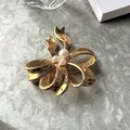 SCA56-【 AVON 】エイボン・ヴィンテージブローチ Gold Tone Faux Pearl Ribbon Bow