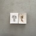 種子のコサージュは初めてです。 ブルーの軽やかな美しさがより一層引き立つようです。 微妙に色が違う小さなひまわりたちが愛らしいです。