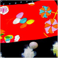 ポケット : 波ウサギ柄の木綿、玩具尽くしの絹布(いずれも古布)