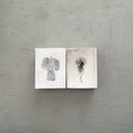 種子のコサージュは初めてです。 ブルーの軽やかな美しさがより一層引き立つようです。 微妙に色が違う小さなひまわりたちが愛らしいです。