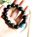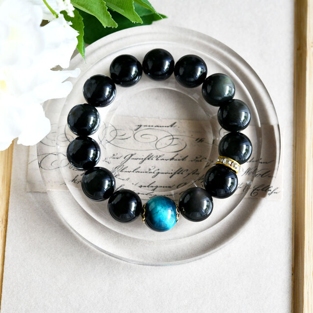 数量限定 ブルータイガーアイとレインボーオブシディアンのブレスレット 大粒