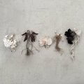 種子のコサージュは初めてです。 ブルーの軽やかな美しさがより一層引き立つようです。 微妙に色が違う小さなひまわりたちが愛らしいです。