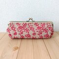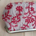 花柄刺繍 がま口ペンケース 19.5cm口金 エンジ 396