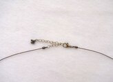 相性の良いブラウンのシルクコードでつなぎ、ビーズの両端には結び目を入れてアクセントにしました。