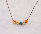 デザインや色合いにヴィンテージな雰囲気のある、花形のチェコビーズをシルクコードで繋ぎ作りましたネックレスです。