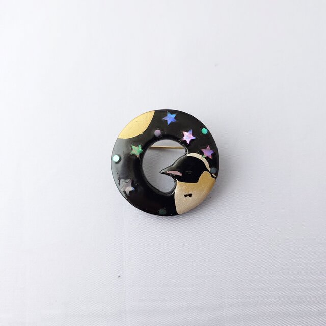 星空螺鈿 皇帝ペンギン漆ブローチ