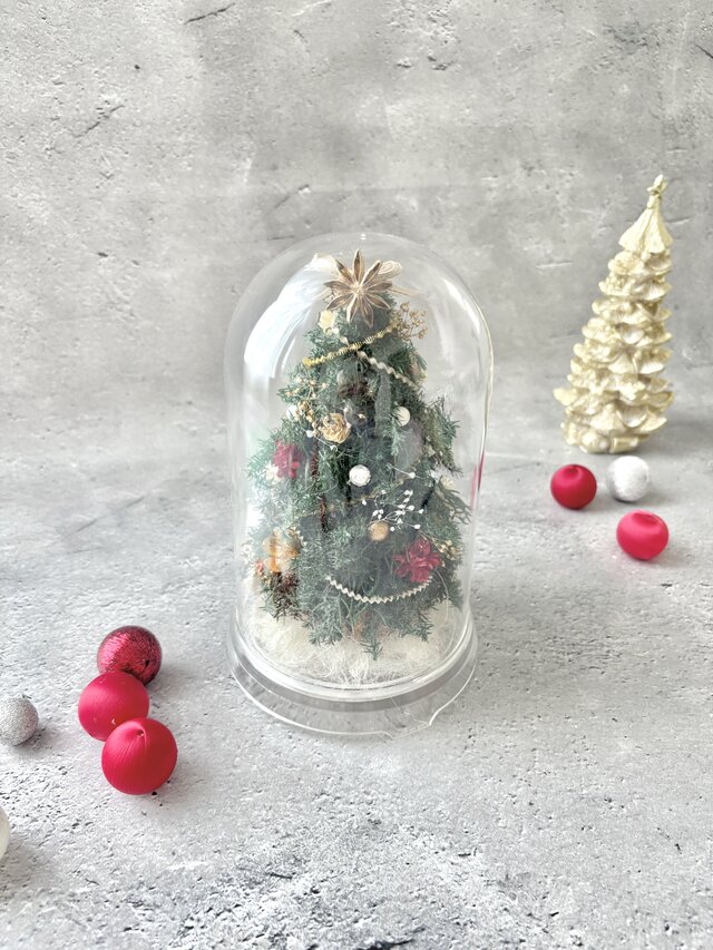 美しさ長持ち!ドーム入りクリスマスツリー/プリザーブドフラワー/木の実/クリスマス/