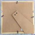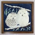 木製の額縁が小屋の窓枠のように、雪景色の中の動物たちを優しく切り取ります。