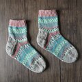 ドイツ製Opal毛糸の水の世界シリーズより〈くらげ〉カラーで編みました。