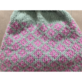 洗濯機で丸洗い可能な毛糸を使用した、小型犬用編み込みセーターです。