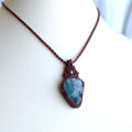 発色の良いグリーンフローライトには、癒し、ヒーリングエネルギーが強いと云われています。内部には、インクルージョン(内包物)やクラック等がありますが 自然の魅力を楽しめる1点もの天然石マクラメ編みアクセサリーに仕上げました。
