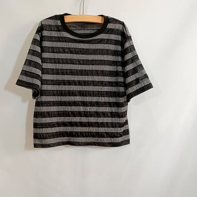 天竺とレースがボーダー状になっている変わった素材で、レース部分の透け感など生地そのものに特徴があるのでシンプルなデザインにしました。