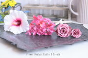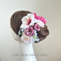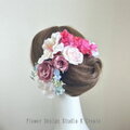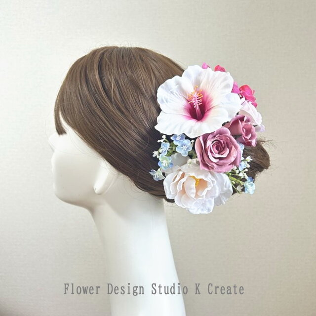 ハイビスカスと紫陽花のヘッドドレス リゾ婚 沖縄挙式 ハワイ挙式 グアム挙式 薔薇 ウェディング リゾ婚 髪飾り ハイビスカス
