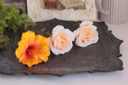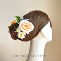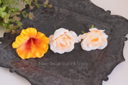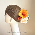 オレンジのハイビスカスとピーチローズのヘッドドレス 結婚式 ウェディング リゾ婚 海外挙式 ハイビスカス バラ オレンジ ピーチ