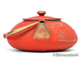 急須の表面に繊細に施された蜻蛉文様は金と赤の華やかな色彩で空間を彩り眺めるたびに心が満たされる美しさです。