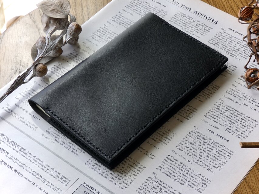 イタリア革のノートカバー(MDノート新書サイズ)/黒