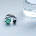 サファイア & オーストラリア 翡翠 天然石 オープン リング シルバー925