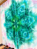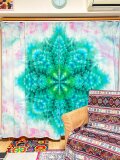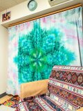 「タイダイ染め カーテン 美しい幻想的な翡翠色のスノーフレイク」