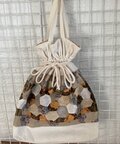 インナーバッグ、サブバッグにぴったり。パッチワーク(ヘキサゴン)の巾着バッグ