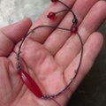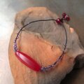 サイズ調整の為のビーズは、赤と紫のヴェネチアン・シードビーズ。