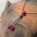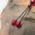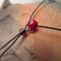 紐の先端には、赤いイングリッシュカットのボヘミアンビーズを下げました。