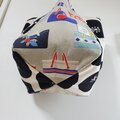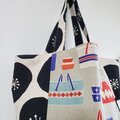 北欧レトロバスケット柄×フラワー柄で4枚はぎのころっとした大きめバッグを作りました。