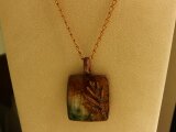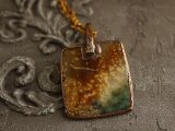 こんなオーシャンジャスパーにコニファーの葉を乗せてみましたら、中々大胆なペンダントに仕上がりました。