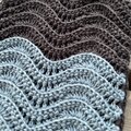 ◯レース糸で、きれいな波模様を編みました。(画像の1枚目と2枚目が表と裏です。上下の色を変えたデザインです。)