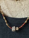 *秋色ネックレス@アフリカの再生玉大小+サンドカラーのジェイド+ジャワビーズ、ベネチアホワイトハート血赤ビーズ