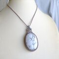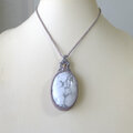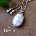 穏やかなホワイトカラーにシルバーグレーカラーのまだら模様が、まるでアートの様なブラジル産ハウライトの大粒サイズのマクラメ編みペンダントネックレスです。