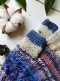 軽くて丈夫なオパール毛糸を使っています。ネットに入れて洗濯機で洗えるのでお手入れがとても楽ですよ。