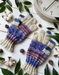 青い鳥の羽根のような色合いの、手編みのスマホ操作対応の5本指手袋です。